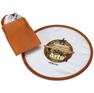 FRISBEE dobrável, em nylon ou poliéster, fita de aço carbono, acabamento em viés colorido.