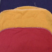 Bandana em brim colorido, acabamento em costura ou overlock.