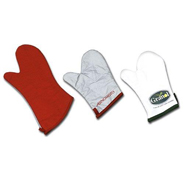 Luvas em brim ou algodão metalizado, forradas, acabamento em viés colorido.