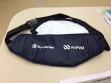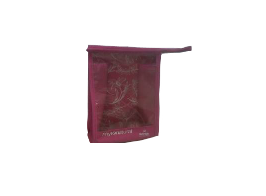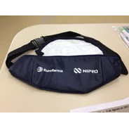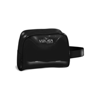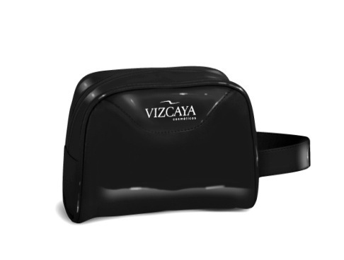 Necessaire em nylon ou PVC, com alça, zíper, gravado em silk screen, acabamento com viés de PVC.