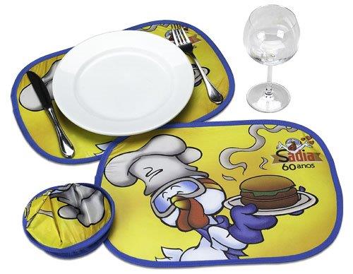 Jogo americano em Polipropileno, gravado em off set, cantos arredondados.
